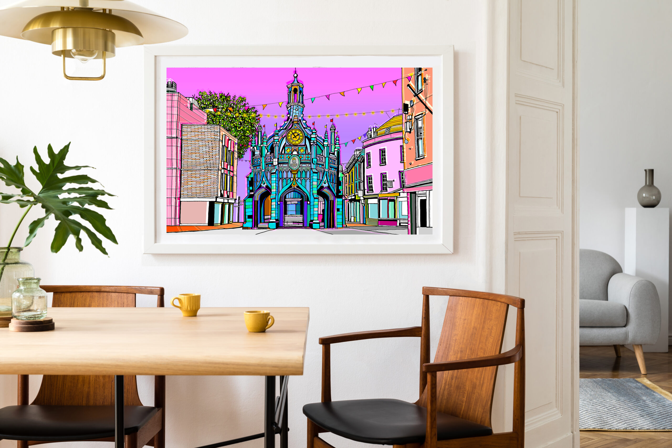 A bold yet refined tribute to one of Chichester’s most iconic landmarks, this piece highlights the architectural beauty and enduring presence of the Cross. With strong lines, balanced composition, and rich colour, it evokes a sense of civic pride and classic charm.